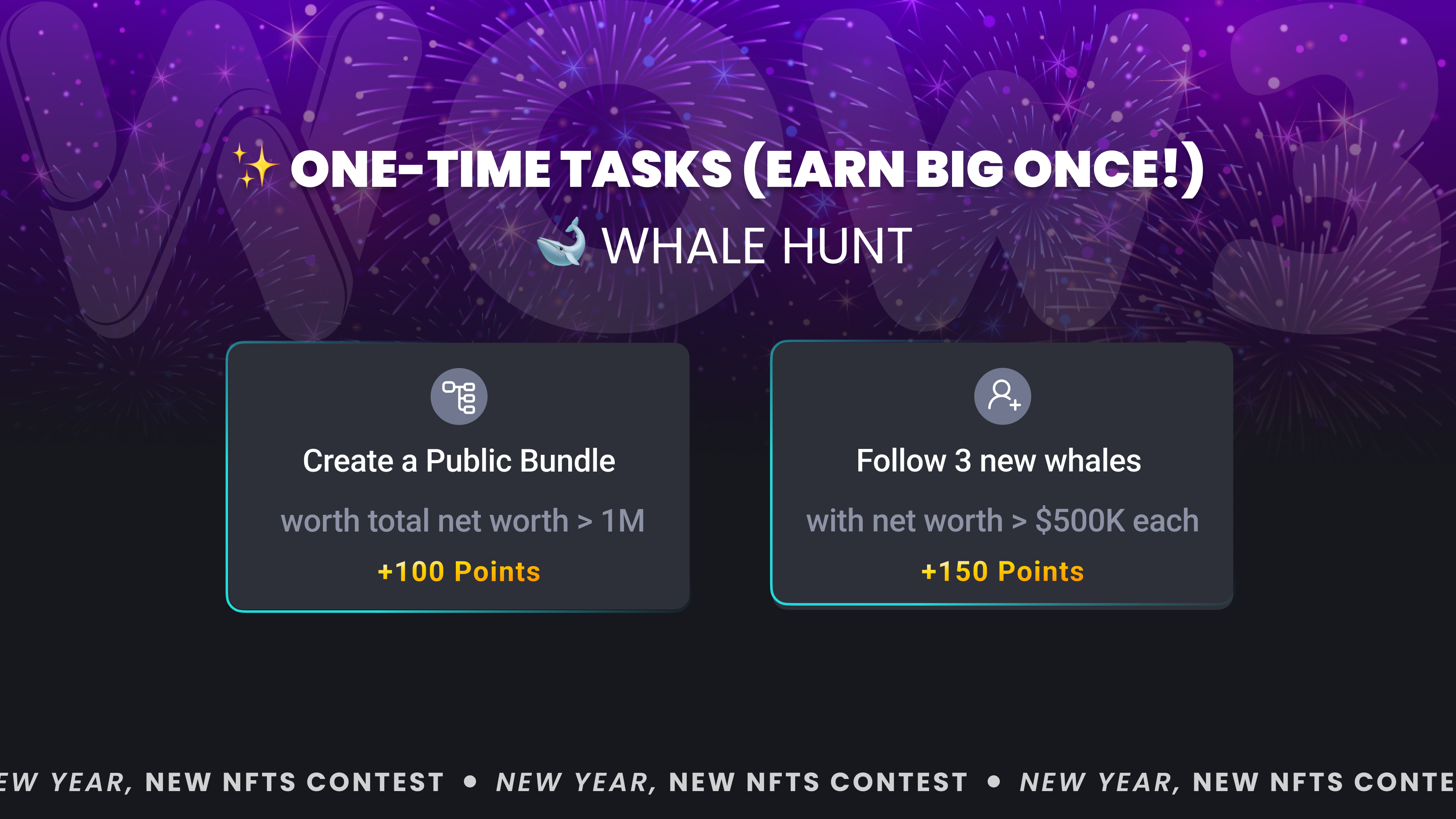 * Follow **3 new whales,** with a Net Worth of over **$500K each:** +150 points