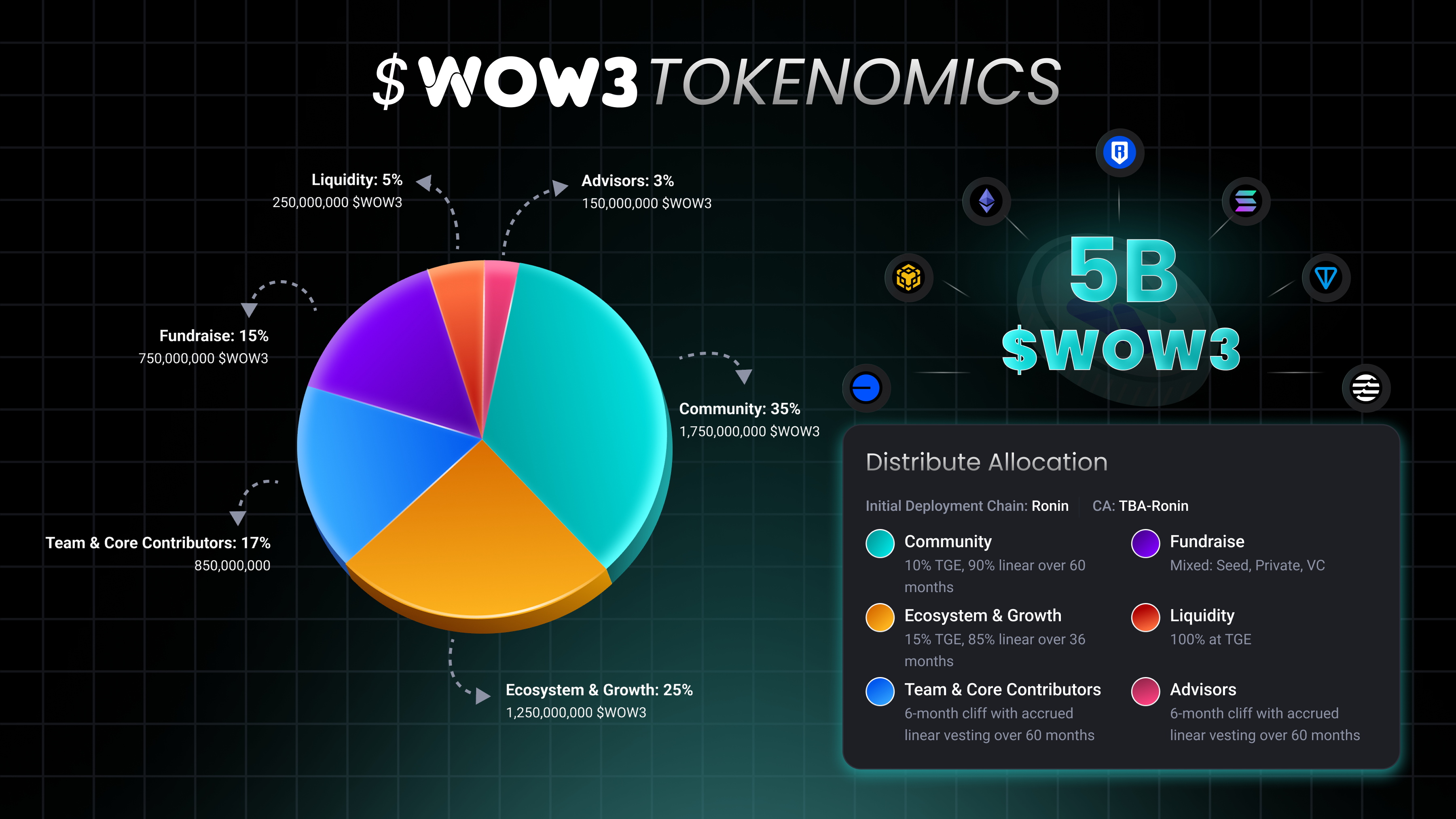 * **Total Supply**: **5,000,000,000** WOW3